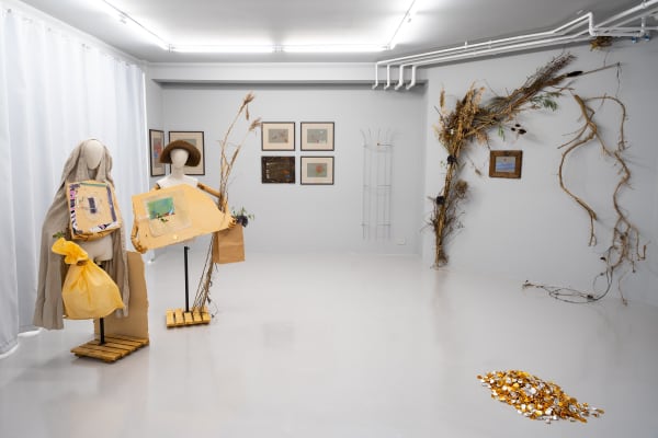 OverviewHannah Heilmann (DK, b. 1978), is an accomplished Danish artist and art historian who employs a cross-media approach in her practice, where paintings, poems, and interactive installations tell complex and poetic narratives about consumerism. Heilmann researches the history of fashion and material fetish (including her own) which provides a perfect back-drop for all kinds of experiments and visualities. Her genius is in combining found objects with simple paintings and drawings. In her works, folklore-like stick-figures run around in windy environments. They fight with flying middle age dresses and boots that are running away by themselves. Her practice evokes humor, seriousness and wonder.Hannah Heilmann is MA in Art History from the University of Copenhagen, and lecturer at The Royal Danish Academy of Fine Arts. She has has exhibited at EKKM – Contemporary Art Museum of Estonia, the Lobster, Los Angeles, Le Bicolore, Paris, Loggia, Vienna, and at ARoS – Aarhus Art Museum, Møstings Hus Kunsthal, and Den Frie Center of Contemporary Art. She has performed at The National Gallery, Copenhagen, the National Gallery, Vilius, and at Manifesta 11, Zürich. She has been premiered by the Danish Arts Foundation, and her works are part of collections at The National Gallery, Brandts Art Museum and Heart – Herning Museum of Contemporary Art.